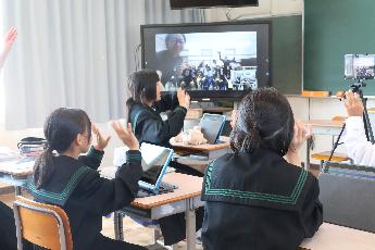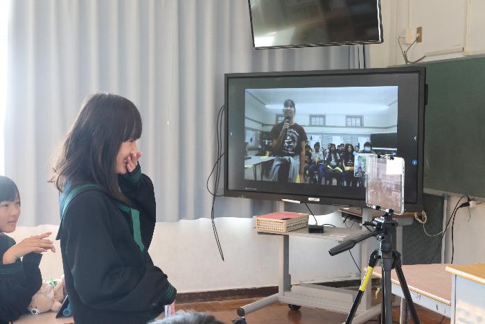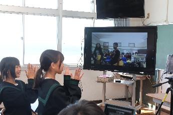 ホノルル市の姉妹校Princess Ke'elikolani Middle Schoolと町立中学校の生徒たちがオンラインで交流をしています。